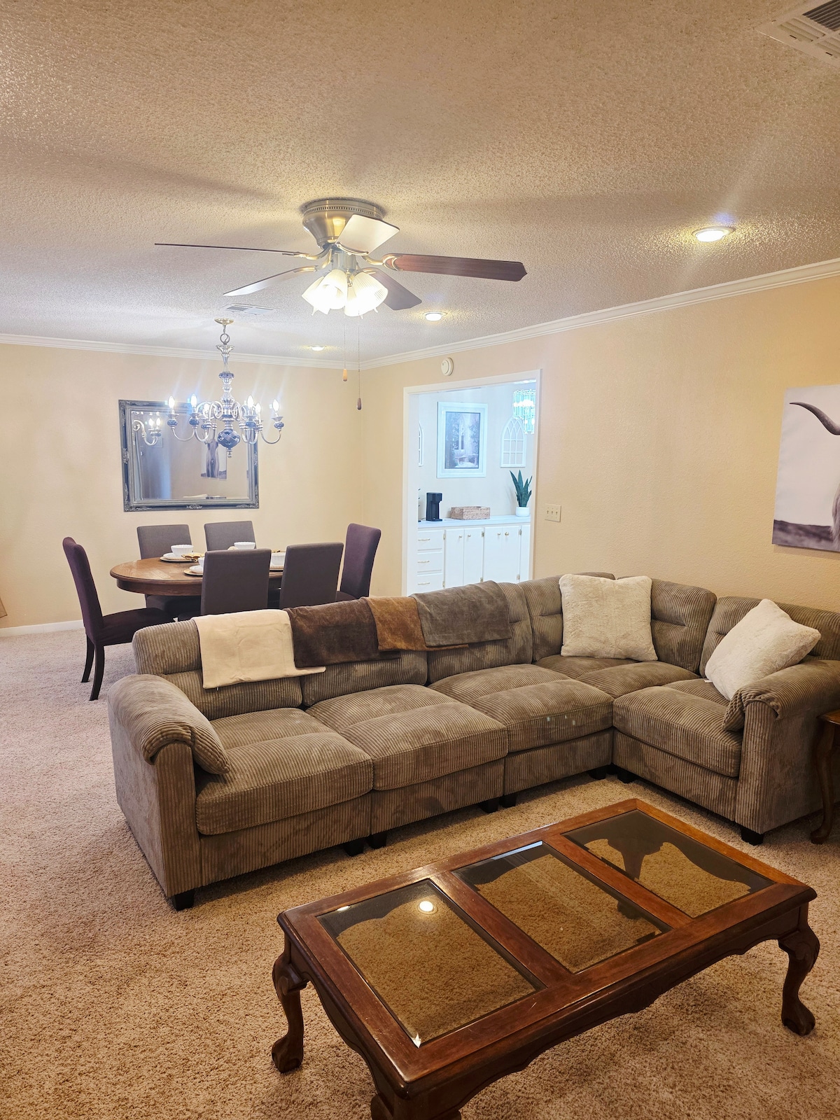 Willkommen in unserem geräumigen, von Cowboys inspirierten Refugium im Herzen von Hereford, Texas! Dieses charmante Haus verfügt über westliche Dekoration, viel Platz zum Entspannen und allen Komfort, den du für einen unvergesslichen Aufenthalt benötigst. Sattle auf und erlebe echte texanische Gastfreundschaft in unserem Cowboy-Paradies!