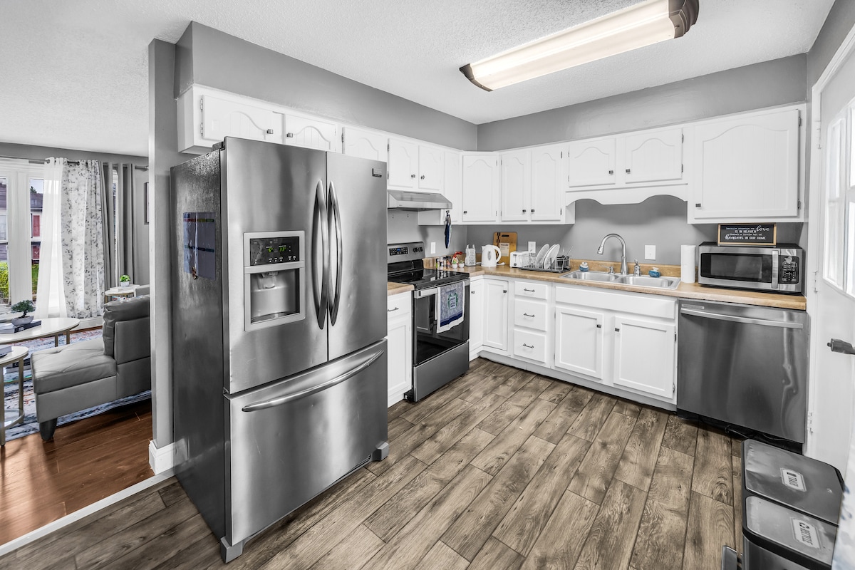 Egal, ob Sie hier sind, um zu arbeiten, sich zu entspannen oder beides, unser durchdacht gestalteter Raum bietet Komfort, Bequemlichkeit und viel Platz zum Entspannen. Geräumiges 3BD/2BR-Haus mit neuen Möbeln, voll ausgestatteter Küche, großem Wohnzimmer, zentraler Klimaanlage, kostenlosem WLAN und Waschküche vor Ort. Parkplätze abseits der Straße für 2 Autos. Zu Fuß zu Starbucks, Target, Olive Garden und 15 Minuten vom Flughafen DEC. Flexibles Ein- und Auschecken und Überwachungskameras im Außenbereich für ein sicheres Gefühl. Perfekt für Familien, Paare oder Geschäftsreisende!