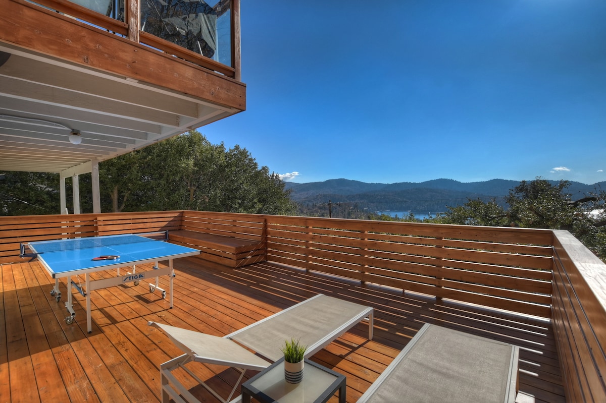 „Skyridge Cabin“ ist ein moderner A-Rahmen-Rückzugsort mit 3 Schlafzimmern und 2 Bädern in Lake Arrowhead mit atemberaubendem Ausblick auf die Berge und die Wüste. Sie verfügt über zwei Schlafzimmer mit Kingsize-Betten und ein Schlafzimmer mit Queensize-Betten mit Ausziehbett, in denen bis zu 6 Gäste untergebracht werden können. Zu den Highlights gehören ein Holzkamin (Holz wird bereitgestellt), ein Balkon mit Adirondack-Stühlen, eine Feuerstelle, eine neue, mit Nest betriebene Klimaanlage/Heizung, Spiele für Kinder, Google Home und ein Rahmen-Smart-TV im Wohnzimmer. Perfekt für einen abgelegenen Bergurlaub.