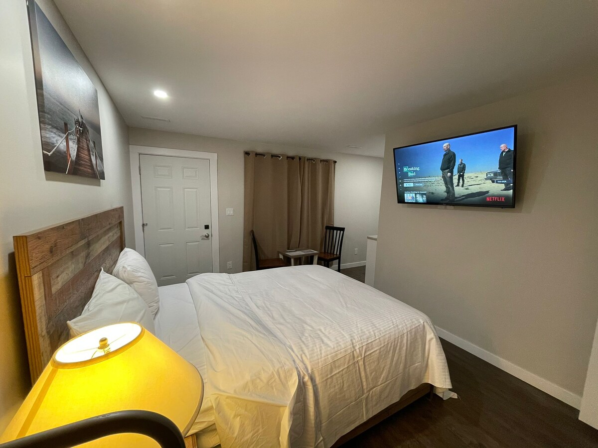 Cozy 2-Bedroom Suite by Bridge Lake – A tranquil retreat surrounded by nature Escape to a peaceful lakeside getaway in our private 2-bedroom suite, just steps from Bridge Lake. This comfortable retreat features: 1 King & 1 Queen bed, living area with TV & Wi-Fi, full kitchen and private bathroom. Enjoy excellent fishing for Kokanee, Trout, and Burbot year-round. Explore the area’s excellent hunting opportunities. Enjoy the beauty of nature with modern comforts. Book your stay today!