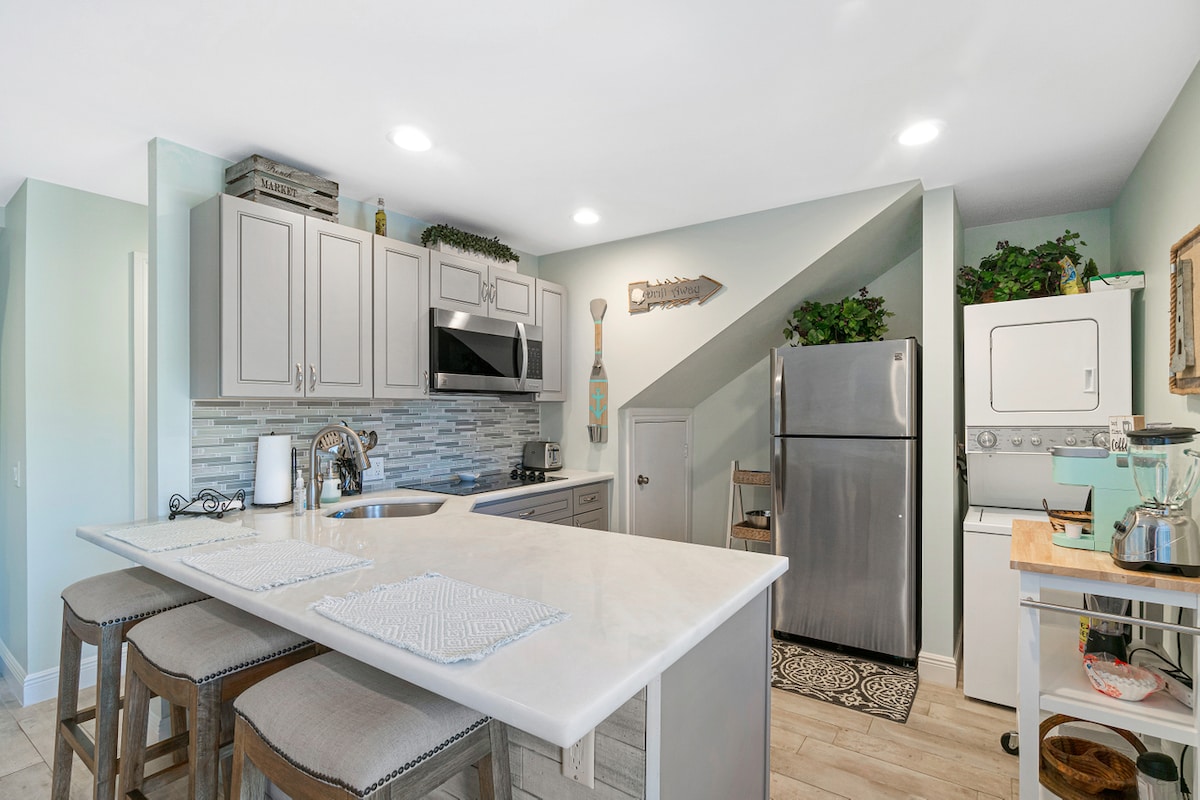 „Mango Beach“. Wunderschön renoviert und für die anspruchsvollsten Gäste dekoriert. Mache eine erfrischende Fahrt zum Strand auf einem unserer neuen Strandkreuzer, etwa eine halbe Meile. Du kannst auch einen entspannenden Spaziergang zum gehobenen gastronomischen, Unterhaltungs- und Kunstangebot der Atlantic Ave. unternehmen. Zieh dich zurück, um dich auf unseren neuen Memory-Schaum-Matratzen mit komplett weißer Bettwäsche und Handtüchern auszuruhen. Oder genieße den Grill im Freien für eine ruhige Nacht zu Hause. Familienfreundlich. Gegenüber von einem schönen Park. BITTE KEINE RAUCHER.