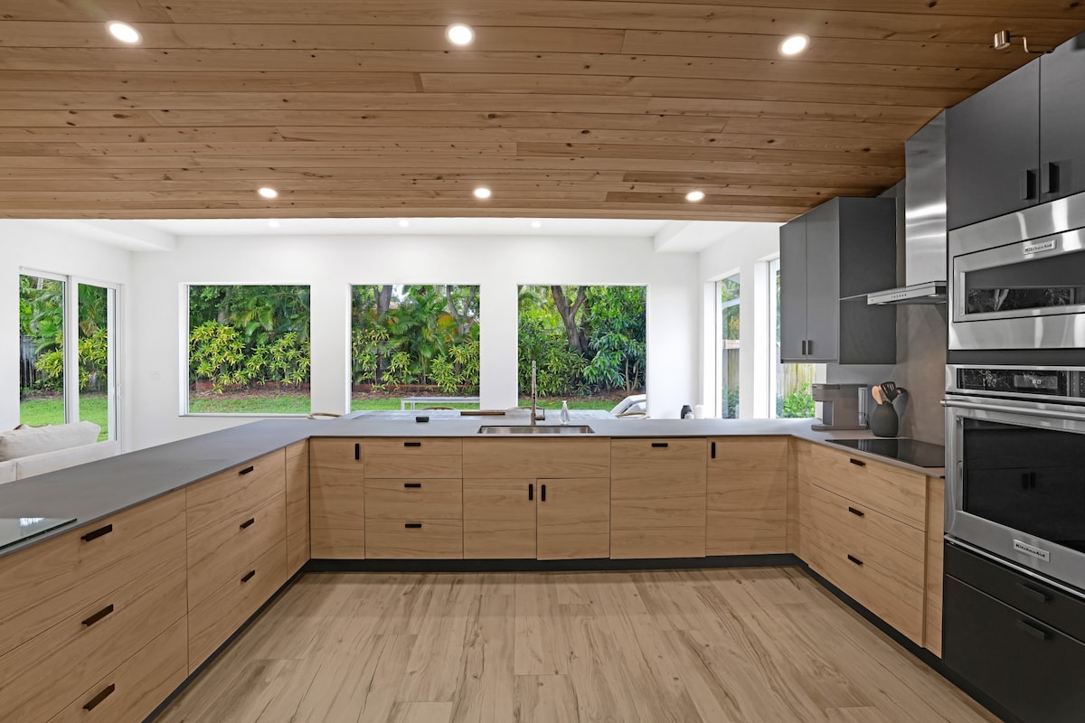 Kühne Innenarchitektur in diesem neu renovierten Pad mit einem schönen Kanal und Dock in Delray. Tritt durch die Haustür und du siehst sofort die großen Fenster mit Blick auf das Wasser im Hintergrund. Das gilt für Delray Beach mit all seinem Charme. Schalte jetzt einen Film auf dem großen 75-Zoll-Smart-TV-Bildschirm ein, lege deinen Kopf auf die bequemen Betten, dusche unter den Regenarmaturen und entspanne dich wirklich in einem Delray-geous-Urlaub. Nur 6 Minuten zum Strand oder zu Delrays fantastischem Nachtleben und Restaurants.