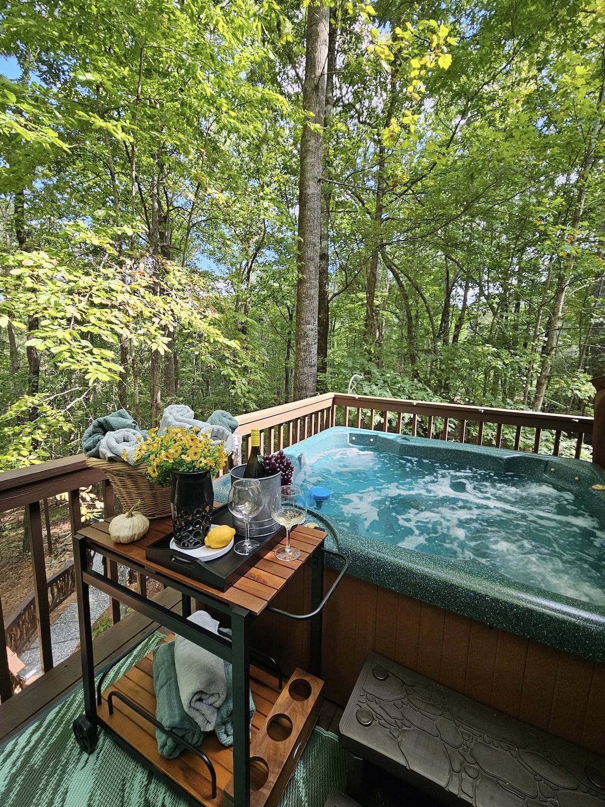 Unser maßgeschneidertes Ferienhaus liegt am Fuß des Yonah Mountain und DIREKT GEGENÜBER dem Weingut Serenity Cellars. Packe eine Kühlbox mit deinen Lieblingssnacks ein und geh runter zum Weingut für Live-Musik und tollen Wein. Oder schnapp dir eine Flasche Wein und genieße die Live-Musik auf der Veranda! Wir lassen unseren Gästen immer eine Flasche lokalen Wein da, um deinen Urlaub gut zu beginnen! Wir befinden uns nur wenige Kilometer von Helen, zahlreichen Weingütern, tollem Essen, Wanderwegen und vielem mehr entfernt!