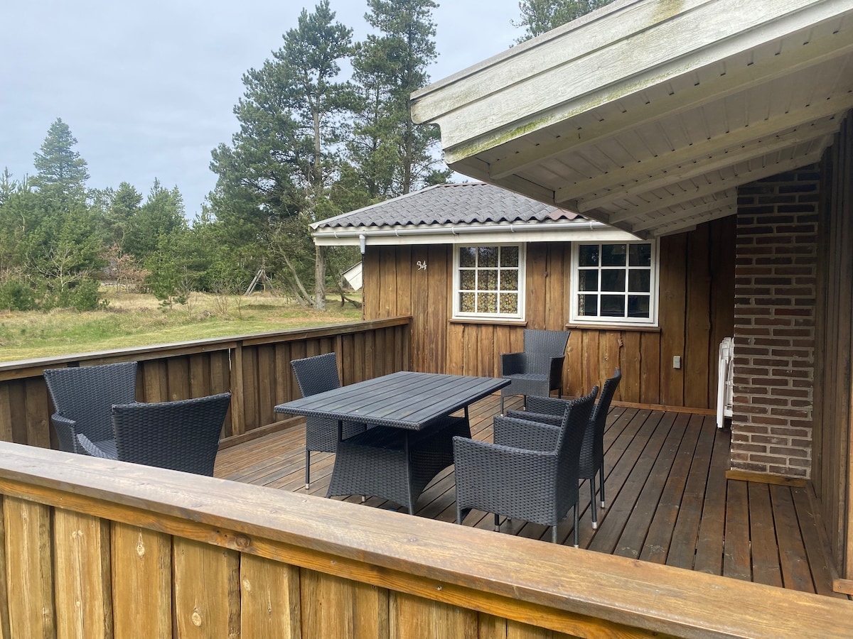 Danish summerhouse w. sauna built for all year round living - area is the closest you stay to Houstrup Beach - wood burning stove, underfloor bathroom heating. Dishwasher, washingmachine, tumbledryer, WiFi, bicycles. Beach by car 5km, 3km by cycle route w. deer & horses to white sandy beach & dunes. Superbly located also for Sea West. Front & rear terrace. Morning bread near. Smoke outside only! Has a residual cold smoke smell inside - cleaned walls/carpets/curtains/repainted in summer 2024.