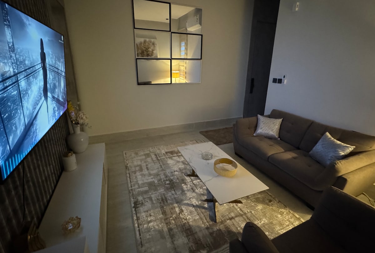 شقة هادئة بتصميم مريح وجذاب غرفه وصالة