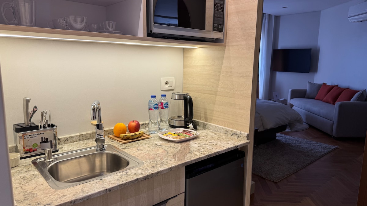 Dieses charmante Studio-Apartment befindet sich in der pulsierenden Innenstadt, nur wenige Schritte vom Nil, beliebten Restaurants, Geschäften, Museen und Sehenswürdigkeiten entfernt. Dieses gemütliche und günstig gelegene Studio ist ideal für Alleinreisende oder Paare, die die Energie der Stadt erleben möchten. Buchen Sie noch heute Ihren Aufenthalt