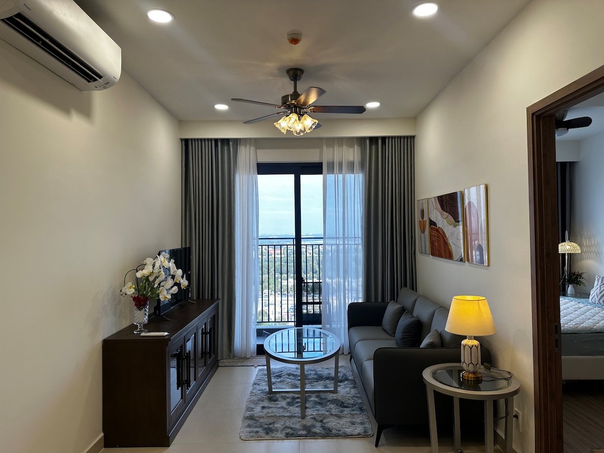 Welcome to the modern 2-bedroom apartment at Midori Park The Glory, located in the heart of Binh Duong New City. This high-floor apartment is spacious and airy, featuring a balcony with views of the swimming pool and tennis court — a peaceful space filled with natural light. Aeon Mall Binh Duong Canary is right at the building’s doorstep, just a few steps away for shopping, dining, or watching movies. A perfect location for families, business travelers, and holiday guests.