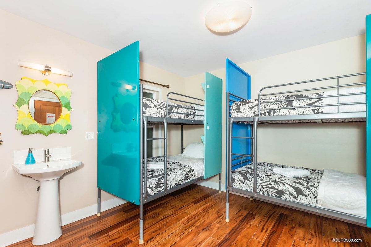 Privatzimmer mit zwei Etagenbetten und eigenem Bad in stilvollem Hostel