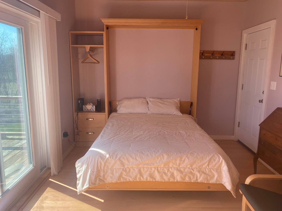 Du betrittst eine große, luxuriöse, private Studiowohnung im schönen Kunsthandwerk-Stil. *Gelegen an einer von der Stadt gepflegten, abgelegenen Straße am Seeufer an der Ostseite des Seneca Lake. *Dreieinhalb Meter hohe Kassettendecken *Auf dem Weinweg am Seneca Lake. *Wir heißen Besucher das ganze Jahr über willkommen. Eine wunderbare Option für Paare, die einen privaten, ruhigen Ort suchen, um wegzukommen. *Viele maßgefertigte Details. *2 zusätzliche Gäste können mit einem ausklappbaren Schlafsofa untergebracht werden (gegen eine zusätzliche Gebühr).