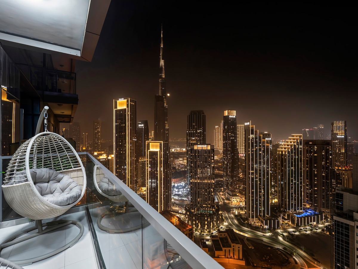 Trophäe| Blick auf den Burj mit Kamin & Kino-Vibes