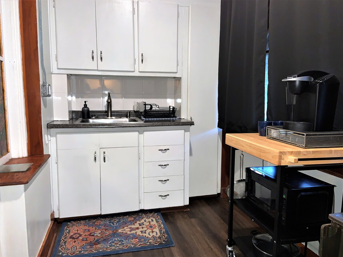 This unique place has a style all its own. This downsized efficiency suite is a comfortable living space. Within 3 blocks; historic cable car + shopping, restaurants, casino, Cathedral, Julien Hotel, Five Flags, River Museum, spas/yoga, Mississippi Riverwalk, winery, breweries, graffiti murals. Coffee included. Awesome for 1-2 people. Sundown mountain short 20-minute drive. Traveling with buddies? Just ask! We have 3 more units next to this one. We have short-term furnished places as well.