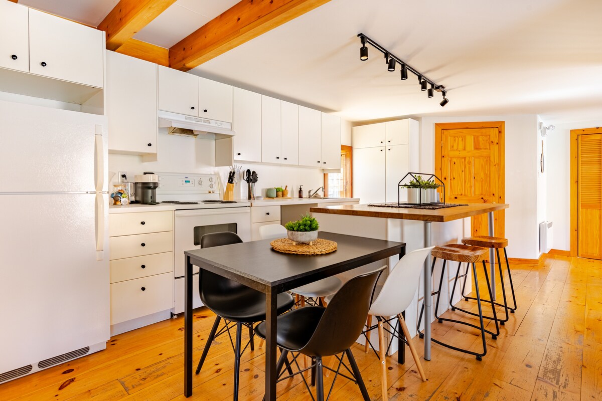 Monumental open concept, in the heart of nature. Access to trails directly behind the house. Wood stove, large modern bathroom, one bedroom + sofa bed. Another sofa bed in the living room. Ideal chalet for a couple with children or two couples. Wild birds, turkey, and deer lovers welcome! Wifi and EV charger included. Dogs Welcome! CITQ : #308038