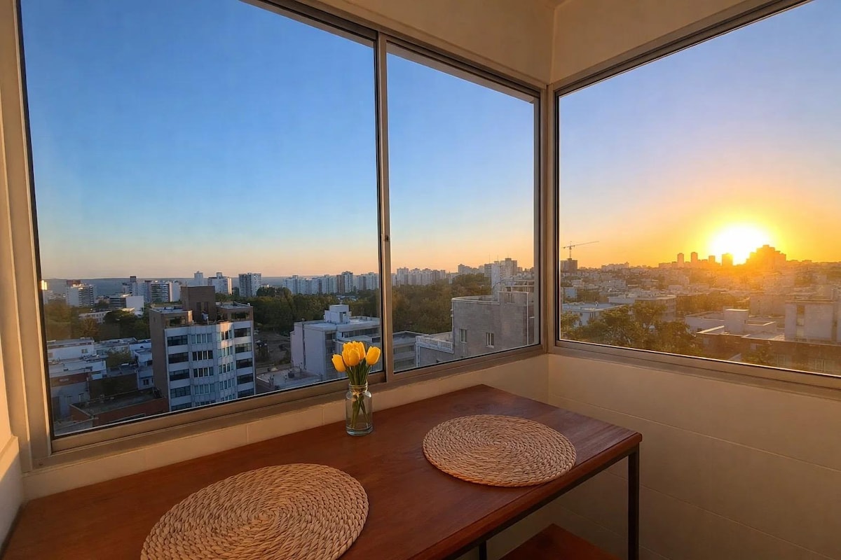 Helles, geräumiges Studio im 18. Stock mit Panoramablick auf Montevideo. Mit einem großen Bett, das in einen Schreibtisch umgewandelt werden kann, einer voll ausgestatteten Küche, einem Badezimmer, Schränken, einem Schlafsofa, einem 55-Zoll-Smart-TV, 5G-Glasfaser-Internet, einer Waschmaschine in der Unterkunft und Balkonen. Genießen Sie Premium-Annehmlichkeiten: 24/7-Concierge, beheizter Innenpool, Außenpool, Fitnessraum, Sauna und Panorama-Coworking-Spaces in einer einzigartigen architektonischen Umgebung. Lebendiges Viertel, nur wenige Schritte vom Strand Buceo, Einkaufsmöglichkeiten und ausgezeichneten öffentlichen Verkehrsmitteln entfernt. Mehr Luxus für weniger. Jetzt buchen.