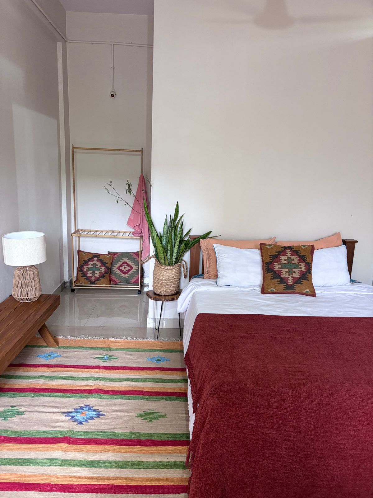 * Alcohol is not permitted inside the apartment. Clean and quiet premium 2BHK apartment ideal for remote work and long stays. Each bedroom has AC and a private bathroom with hot water. Dedicated workspace with desk and chair. Fast, stable WiFi suitable for video calls. Power backup. Mini kitchen with fridge, induction stove and kettle. Washing machine. TV. Private balcony — perfect for morning coffee, focused work or evening downtime. Located in a calm area, 10-minute walk to the beach.