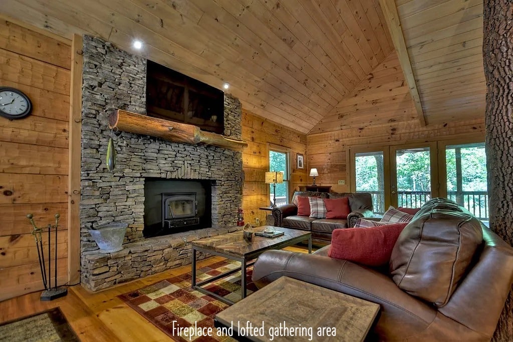 CHASING VIEWS – Atemberaubende Berglandschaft. Unser gemütlicher Blue Ridge-Rückzugsort ist für diejenigen, die einen romantischen Kurzurlaub, ein Familienabenteuer oder eine ruhige Bergauszeit in einer geschlossenen Wohnanlage suchen. Unsere 3000 SF große Vierbett-Hütte inmitten der Blue Ridge Mountains mit atemberaubendem Blick auf den Sonnenuntergang verfügt über eine voll ausgestattete Küche, 3 Kingsize-Betten, 2 Etagenbetten und eine Feuerstelle. Einfacher Zugang zu Wanderwegen, Rafting, Reiten und Seilrutschen. Arcade-Spielzimmer, eine Theaterumgebung und haustierfreundlich.
