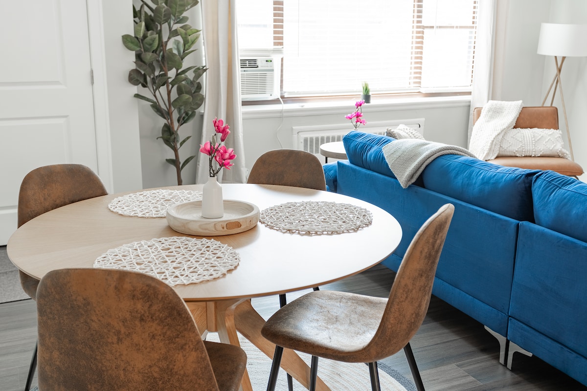 Genieße unsere gemütliche, neu renovierte 2-Zimmer-Wohnung in einer ruhigen Wohngegend. Die Unterkunft liegt zentral, nur wenige Minuten von der Northwestern University (1,5 Meilen), der Loyola University (3,8 Meilen), der Innenstadt von Evanston, dem Seeufer und Chicago entfernt. Die Wohnung ist perfekt für Paare, Familien mit kleinen Kindern, Eltern und Teenager auf College-Besuchen oder Freunde und ist mit den wichtigsten Annehmlichkeiten, kostenfreiem WLAN und TV ausgestattet.
