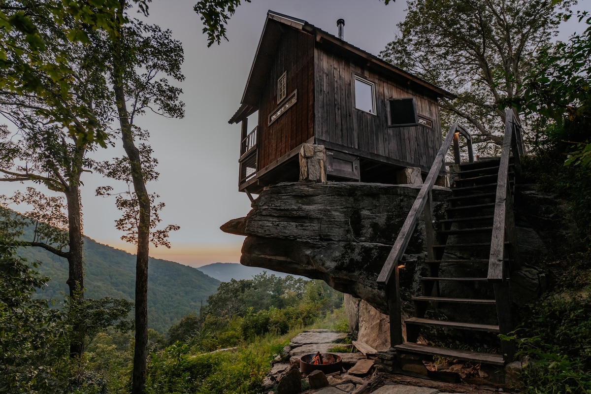 . 🚗 AWD/4WD required to drive to the venue 🥾 No AWD/4WD = steep uphill hike carrying all gear Our cliffside cabin is an immersion into a world where adventure meets serenity, where you'll feel the embrace of nature and the thrill of the extraordinary. Enjoy complete serenity while being just a short drive away from fantastic restaurants, shops, and attractions. ✔ Partially Suspended over a Cliff! ✔ Comfortable Queen Bed + Sofa ✔ Kitchenette ✔ Deck with Scenic Views