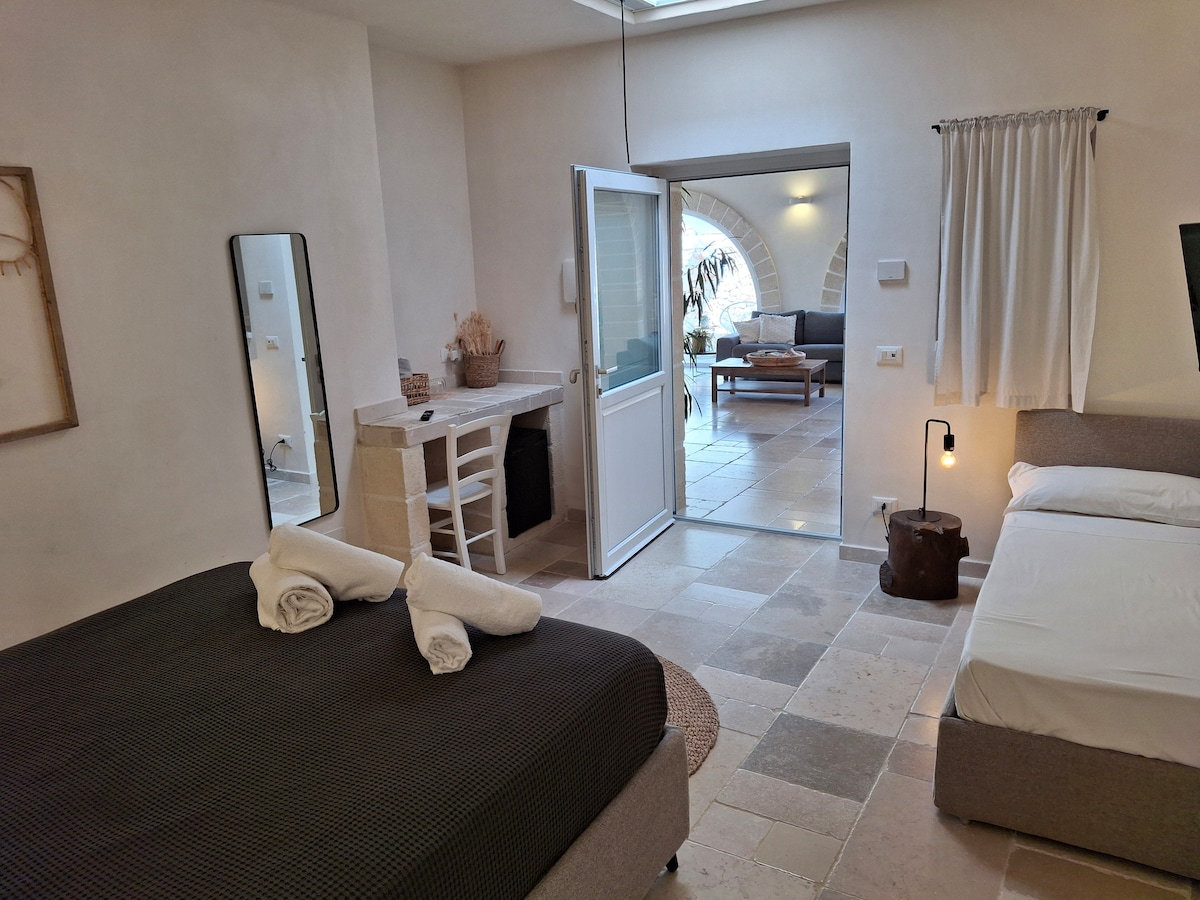 Das Lamia Doppia liegt im Vale D'Itria, das für die "Trulli" und die Herstellung von nativem Olivenöl extra berühmt ist. Es ist ein altes, typisches und komplett renoviertes Gebäude. Es liegt inmitten von Olivenbäumen und versteckt in einem kleinen ländlichen Paradies, nur 20 Minuten von weißen Sandstränden und türkisfarbenem Meer und nur 5 km von einem der schönsten Dörfer Italiens entfernt: Cisternino. Ein großartiges Reiseziel zu jeder Jahreszeit, hier können Sie immer das milde und sonnige Klima Süditaliens genießen.