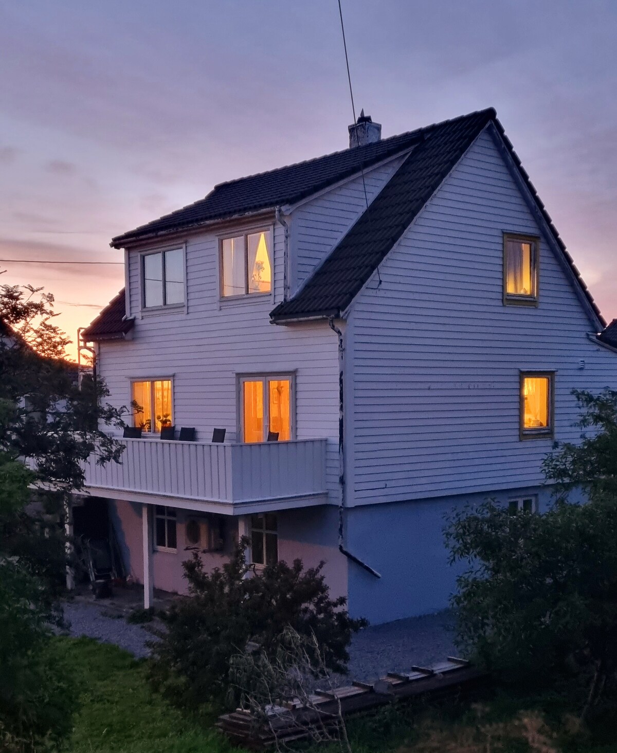 Wie wäre es mit einem exotischen Umweg zum Ozean im Westen? Voll ausgestattete, neuere Unterkunft, für kürzere oder längere Aufenthalte. Einzigartiger Meerblick. Wenn du Glück hast, siehst du wilde Schafe, Gänse und Adler. 1,5 Stunden nördlich von Bergen - 2 Schlafzimmer (5 Schlafplätze) - Offene Wohn-/Küchenlösung, - Geräumiger Flur und Badezimmer - Kleiner Garten mit flacher Liegewiese, etwas Naturgrundstück -Große Terrasse - großer Parkplatz - Bücherregal mit großer Auswahl an Büchern, CD-Player und CDs - ca. 1 km zum Sandstrand