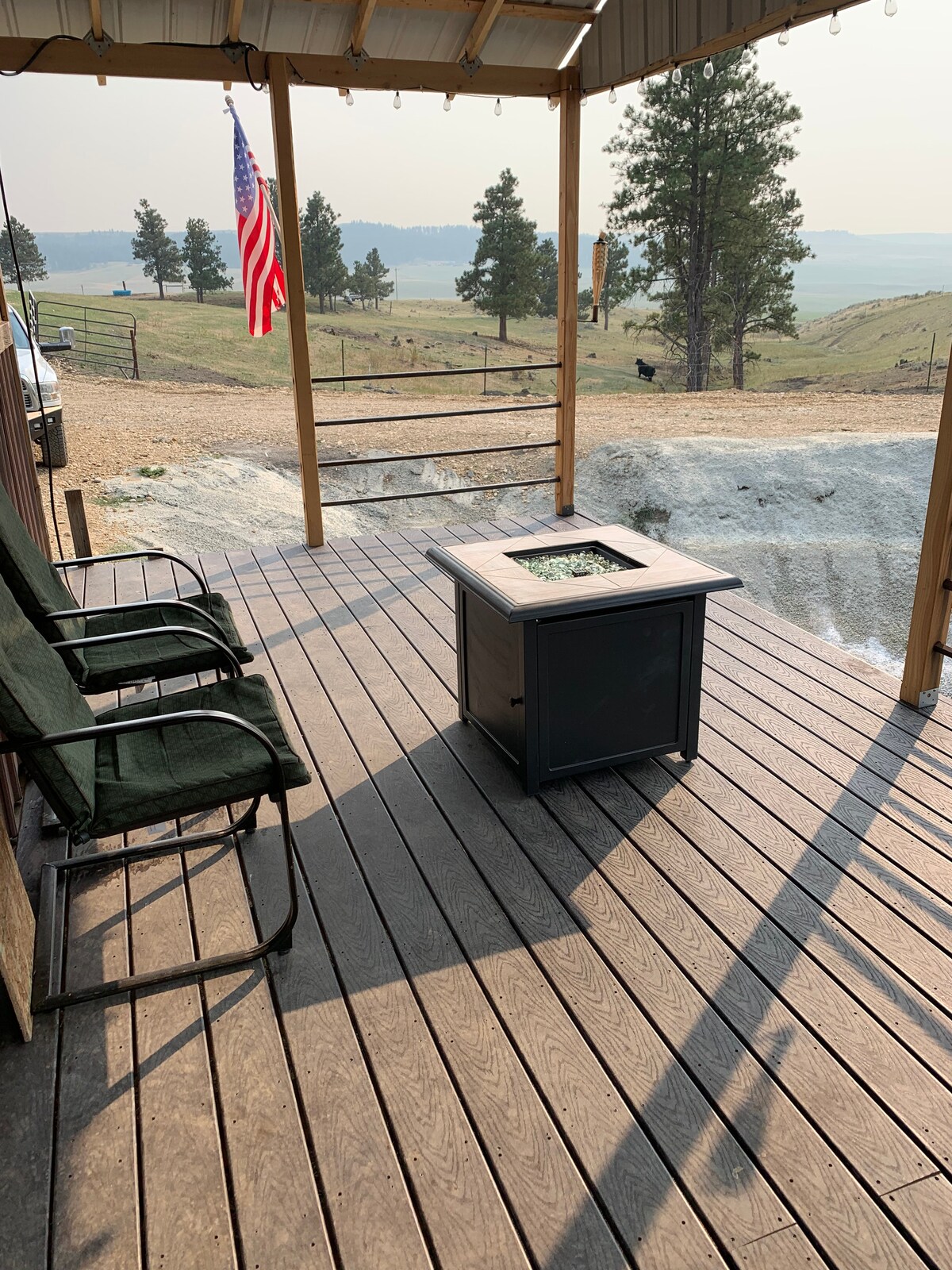 Egal, ob Sie geschäftlich oder privat unterwegs sind, dieser gemütliche, einräumige Gästeplatz bietet einen ruhigen Rückzugsort mit schöner Aussicht. Es ist klein und malerisch, perfekt für Alleinreisende oder Paare. Es verfügt über ein Queensize-Bett, eine Luftmatratze auf Anfrage, eine voll ausgestattete Küche, ein Waschbecken, Geschirr, Töpfe und Pfannen, einen Kühlschrank, ein Kochfeld, einen Backofen, eine Mikrowelle, eine Keurig-Maschine und einen Fernseher. Wir sind 2 Meilen von der Innenstadt von Lewistown entfernt und in der Nähe einiger der besten Angel-, Wander- und Jagdgebiete. Der Traeger-Grill kann auf Anfrage genutzt werden.