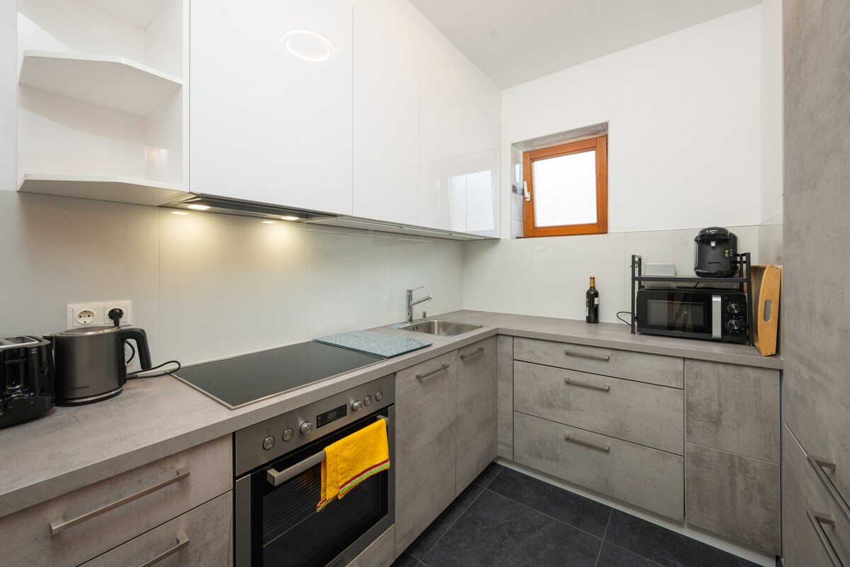 Es erwartet euch eine schöne, sehr helle, freundlich eingerichtete 30 m² Wohnung mit atemberaubendem Ausblick auf die Tiroler Berge. Sie liegt in einem ruhigen Wohngebiet angrenzend an einen Föhrenwald. In dieser 2 Zimmerwohnung befindet sich ein Schlafzimmer mit einem 140 x 200 cm großen Bett, welches zum Entspannen einlädt. Zusätzlich befindet sich im Wohn-Essbereich eine großzügige Couch mit Schlaffunktion für 2 weitere Personen. Das kleine moderne Bad verfügt über eine Regendusche.
