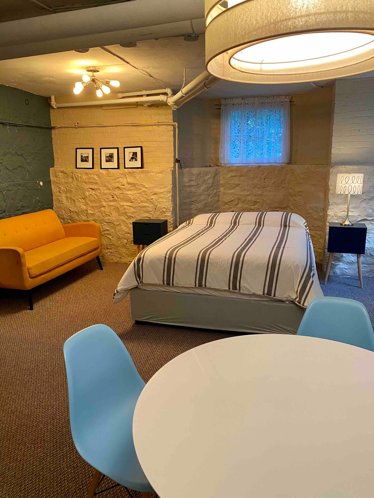 Unsere neu renovierte Wohnung befindet sich auf der unteren Ebene eines viktorianischen Hauses aus dem Jahr 1920 im Herzen des Dorfes Warwick. Sie verfügt über 650 Quadratfuß Fläche mit 2 Schlafzimmern und einer voll ausgestatteten Küche und einem Badezimmer. Du kannst zu Fuß zu schönen Geschäften, Parks und Restaurants gehen oder nur wenige Minuten zum Skifahren, Golfen, Wandern oder genießen unserer lokalen Obstgärten und Weingüter fahren (kostenlose Parkplätze abseits der Straße). Es gibt sogar einen Donut-Shop auf der anderen Straßenseite! All dies mit einem riesigen Garten mit eigenem plätscherndem Bach! Willkommen in der 69 South St.
