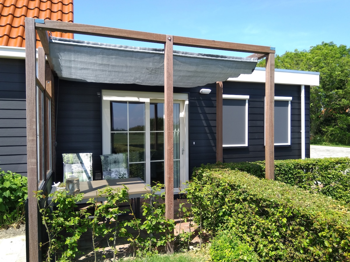 Luxuriöses Ferienhaus in Zeeland für 2 Personen. 2,7 km vom Strand entfernt. Neu gebaut 2022 . Inkl. 2 Fahrräder und Bettwäsche. Ein Ferienhaus in einem romantischen Ambiente, Umgebung in der Nähe der Mühle, eine schöne private Terrasse mit Fenstertüren, Lounge-Set. Ein gemütlich eingerichtetes Wohnzimmer mit TV und elektrischem Kamin. Küche mit Einbaugeräten und Notwendigkeiten. Ein modernes Bad mit luxuriöser Regendusche, Toilette und Waschbecken. 1 Schlafzimmer mit Doppel-Luxus-Boxspring. Alles auf dem gleichen Niveau. Max. 1 Hund willkommen.