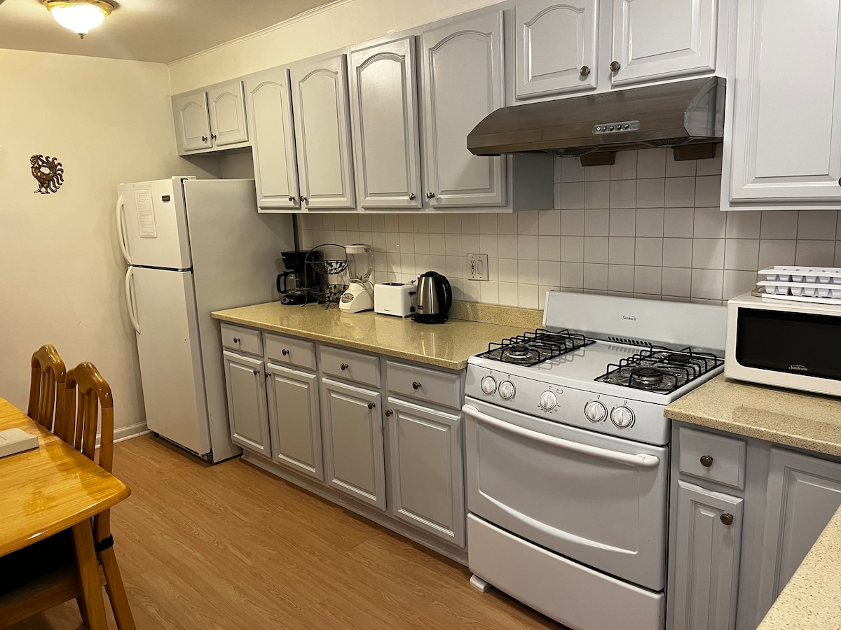 Gemütliche, helle und große Wohnung in einem ruhigen Privathaus. Diese Wohnung gehört ganz dir, privat. Dieses sonnige Haus bietet ein Schlafzimmer oder zwei Schlafzimmer, falls gewünscht. Die saubere, übersichtliche Wohnung verfügt über ein voll ausgestattetes Badezimmer und eine Küche mit Kühlschrank, Mikrowelle, Herd, Backofen, Geschirrspüler und Wasserkocher. Wohnnachbar mit Parkplatz leicht auf der Straße zu finden (kostenlos). Busse und Züge. Viele Restaurants und Fast Food zu Fuß erreichbar. Dunkin' Donuts ganz in der Nähe.