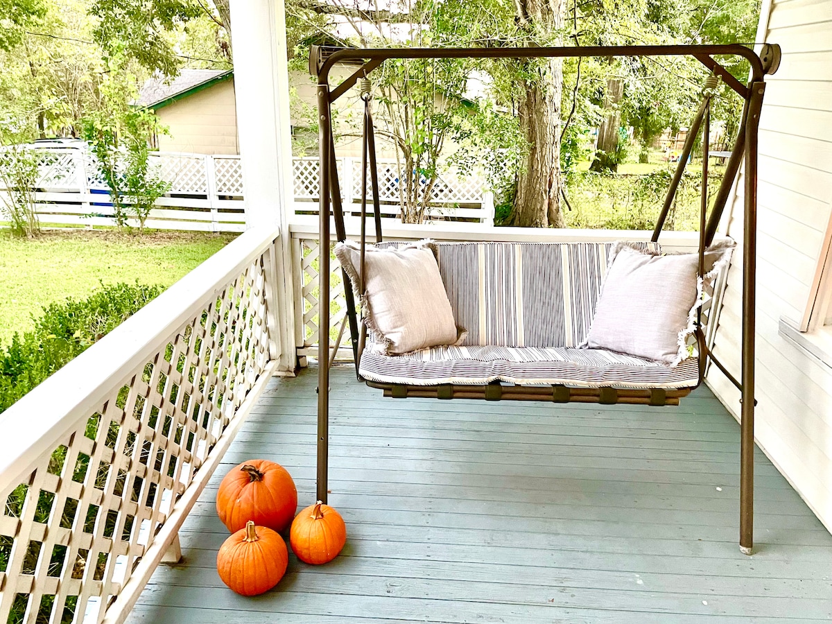 Egal, ob du auf der Suche nach einem ruhigen Landausflug bist oder eine Veranstaltung bei A&M hast, brauchst du nicht lange weitersuchen als Cowabunga Cottage! Dieses komplett renovierte Ferienhaus aus den 1950er Jahren mit 2 Schlafzimmern und 1 Bad liegt weniger als 30 Minuten vom Kyle Field, Bryan College Station auf einer großen Rinderfarm und bietet alles, was du suchst, und vieles mehr. Partyterrasse im Freien, Feuerstelle, Gasgrill, Discgolf, Cornhole, Wippen und Hollywoodschaukel. Bei jedem Aufenthalt gibt es ein kostenloses Bündel Brennholz und Leckereien, um die Kühe von Hand zu füttern.