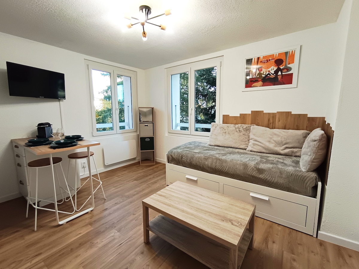 Ruhige Umgebung, 20 Minuten zu Fuß von den Annehmlichkeiten entfernt. Achtung: Bettwäsche und Handtücher werden nicht zur Verfügung gestellt! Respekt und obligatorische Reinigung am Ende des Aufenthalts. Ein Zuschlag wird in Rechnung gestellt, wenn die Reinigung nicht durchgeführt wird. Das Studio verfügt über ein Wohnzimmer mit "Schlafsofa" und Küchenzeile (TV, Kühlschrank, Mikrowelle, Dolce Gusto-Kaffeemaschine, Toaster, Raclettegerät), einen Flur mit einem Bett für 1 Person, ein Badezimmer mit WC und ein Skiraum.