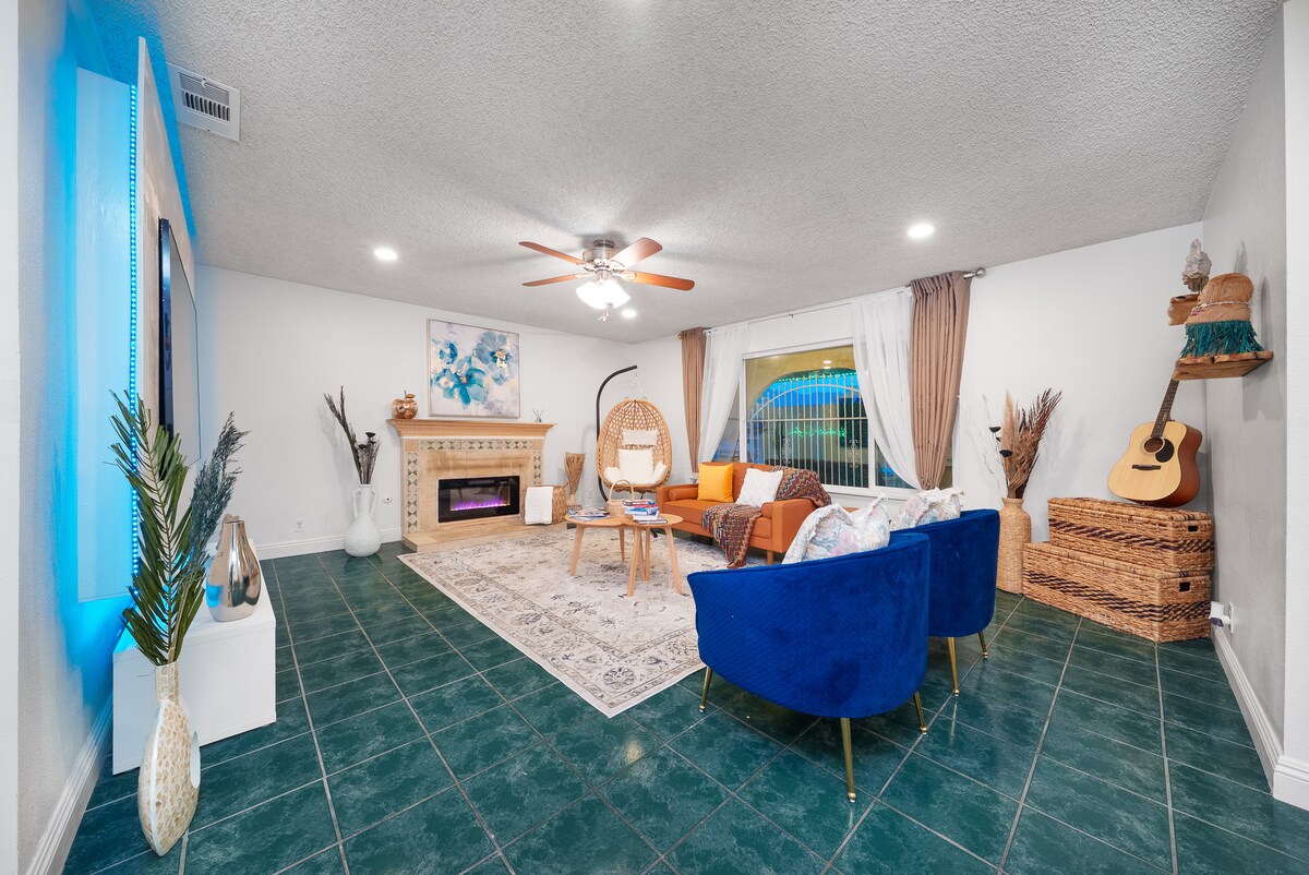 Haus mit Master-Kingsuite, 9 Betten 4 Schlafzimmer Kinderzimmer alle Betten neuer Memory-Schaum ,Tesla Charging verfügbar Hi-Speed-WLAN-Mesh- 4K Smart HDTV -ring Outdoor-Sicherheitskameras sichere Nachbarschaft - Wir bieten ein sauberes und desinfiziertes Haus Handtücher und Bettwäsche sind vorhanden - Die Küche ist voll ausgestattet. Kaffeebereiter - Grill- und Außenterrassenlounge , privater geschlossener Hinterhof Gemeinschaftspool 4x pro Monat gereinigt. In der Nähe von Victoria Gardens , 210 und 15 Autobahnen 4 Meilen vom Golf entfernt - keine Partys -⛳️ KEINE Ausnahmen Keine Haustiere