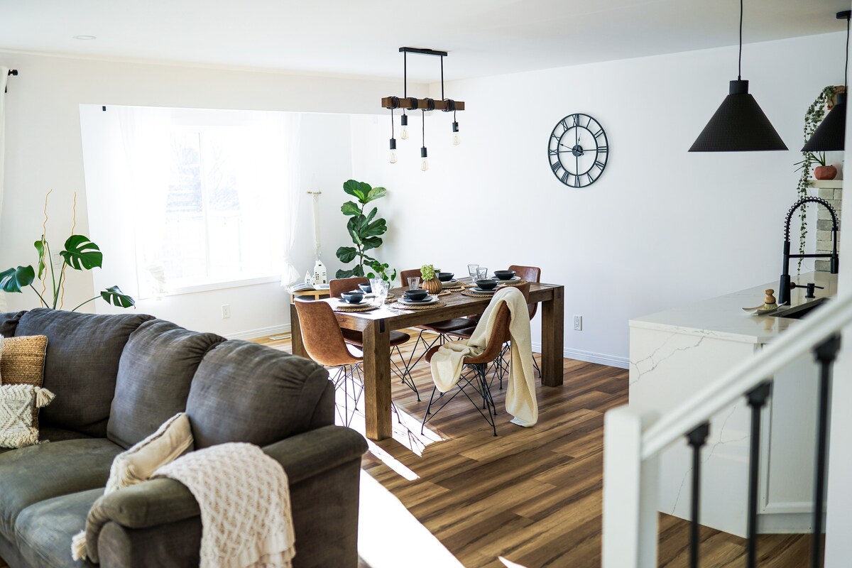 Wir haben unseren Raum mit einem frischen und modernen, aber gemütlichen Ambiente für Gäste und Familien gestaltet, um das einzigartige Erlebnis des Okotoks-Seenlebens zu genießen. Egal, ob du Lust hast, eine Angel zu nehmen, zu schwimmen oder in einem Kajak herumzupaddeln, es ist alles hier, damit du es genießen kannst. Lass deinen Tag ausklingen und genieße ein Bad im Whirlpool, einen Drink auf der Terrasse oder sieh dir deine Lieblingssendung auf Netflix an.