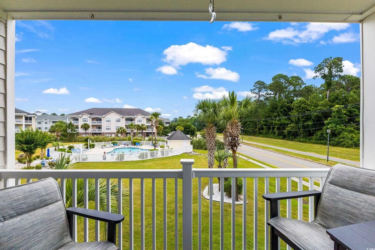 Relax and recharge in this quiet coastal 2-bedroom condo in Myrtle Beach. Perfectly located near golf courses and just minutes from the beach, dining, and shopping, this modern space offers comfort and calm in a peaceful community. Enjoy a shared outdoor pool, fully equipped kitchen, Smart TV, high-speed Wi-Fi, private balcony, free parking, and easy self check-in. Ideal for couples, small families, snowbirds, or a relaxing coastal escape.