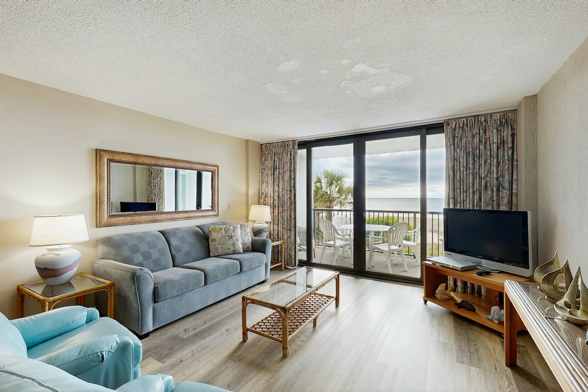 Ocean-view condo with balcony & beach access
