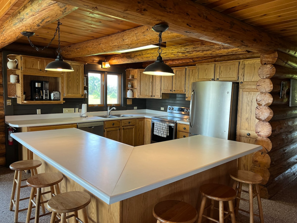 Entfliehe unserem geräumigen Blockhaus in Pierre, South Dakota, das den gleichen Komfort wie zu Hause bietet und einen atemberaubenden Blick auf den Missouri River (Lake Sharpe) bietet. Unsere Hütte liegt auf einem Grat und bietet eine atemberaubende Aussicht sowie im Herzen der Jagd und Angeln in South Dakota; sie ist perfekt für Familien oder eine Gruppe von Freunden. Etwas außerhalb von Pierre, nur 1,6 km vom Cattleman's Steakhouse entfernt, kannst du die Ruhe des Landes genießen und trotzdem in der Nähe der Annehmlichkeiten der Stadt sein.