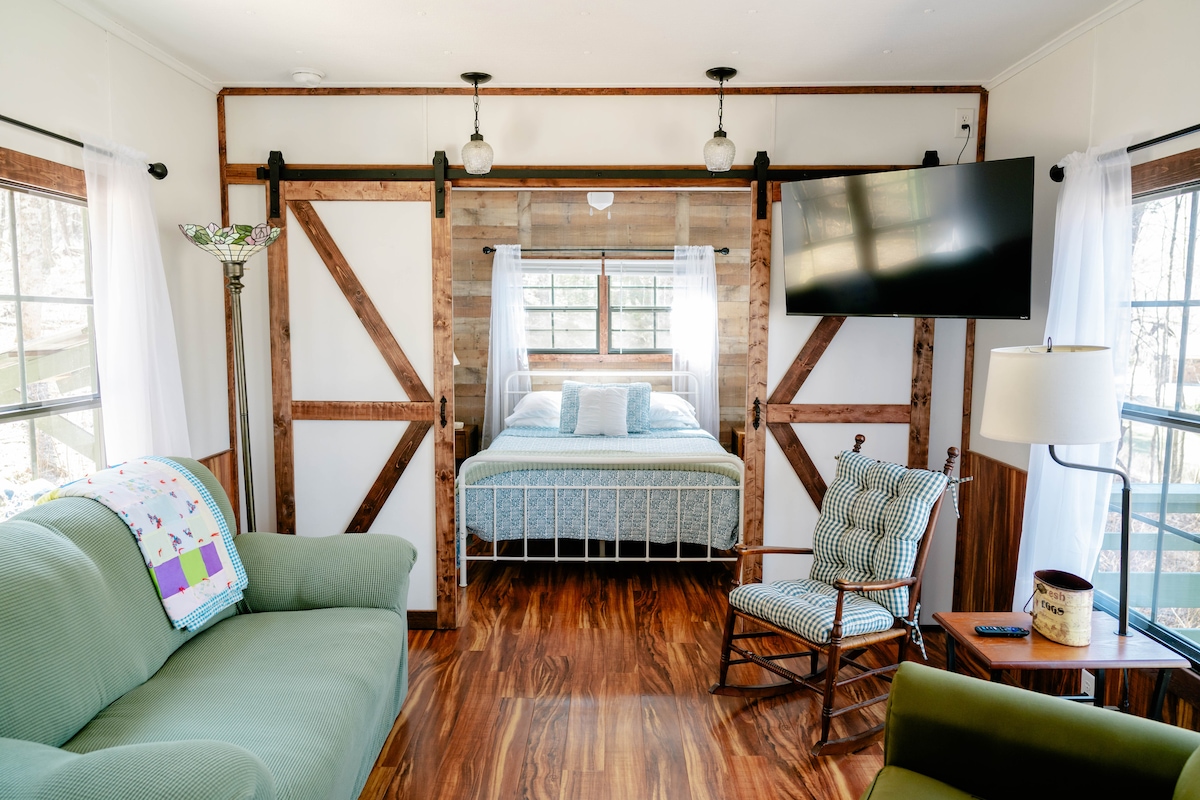 Top pick list of “Best Airbnb.” Wake up under the French toile headboard before heading out onto the deck for a morning coffee, surrounded by stunning woodland and luxury. This chic cabin is filled with imaginative decorations and feature hints of Parisian colors under a vaulted roof. Perched on a wooded lot & minutes from all Boone Proper (6.9miles), B. Elk,(9miles) and B. Rock(7miles) has to offer. TSOP is the place to relax, regroup and recoup time. Sit back and listen to your inner peace.