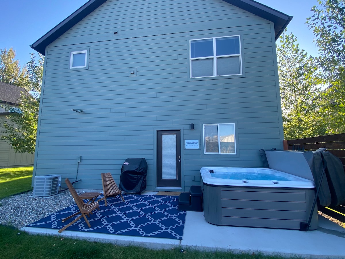 Viel Platz für die ganze Familie! Du wirst die zentrale Lage dieses Hauses genießen – nur 15 Minuten zum Flughafen, 30 Minuten zur Bridger Bowl, 40 Minuten zum Big Sky und nur 15 Minuten zur Innenstadt von Bozeman! Du kannst zu Fuß oder mit dem Fahrrad zum Gallatin River gehen, um innerhalb von 5–10 Minuten großartig zu angeln. Mit einem großen Hauptbett und Bad, einem Gästezimmer mit einem Queensize-Bett und viel Platz auf der Couch bist du garantiert komfortabel! Zwei Sitzbereiche im Freien, ein Grill und ein Whirlpool für 4 Personen tragen zum Genuss bei!