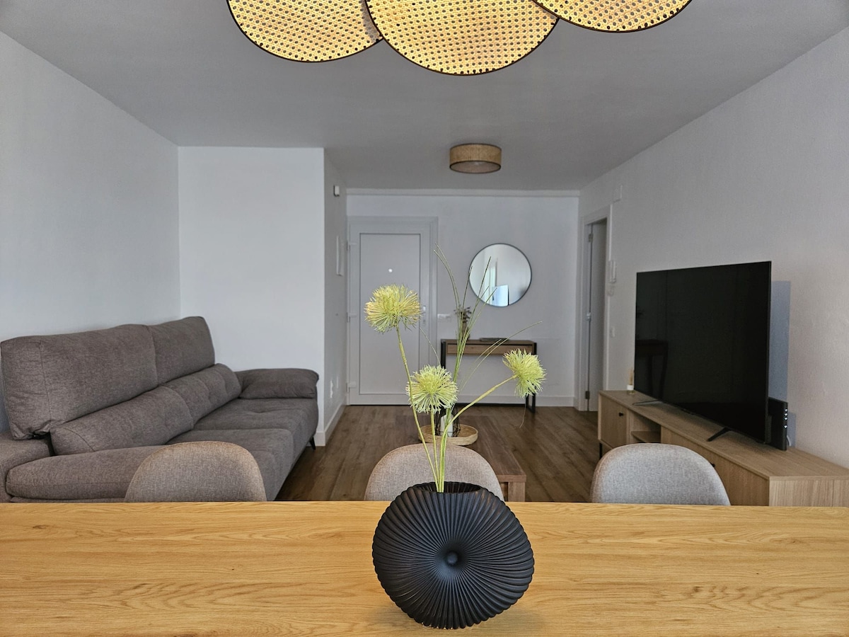 Apartamento nuevo en 1ª línea de playa. 2 dormitorios: uno con cama de 1,50 (con televisor) y otro con 2 camas de 90, ideal para 4 personas. Baño: ducha y secador de pelo. Zona de estar: 2 sofás y smart TV. Cocina completamente equipada: vitrocerámica, lavavajillas, nevera, tostadora, batidora, exprimidor, tetera. Lavadora, secadora, plancha, tabla de planchar, aspiradora, toallas y ropa de cama. Wifi. 2ª planta sin ascensor. Vistas inmejorables, podrás desayunar mirando y escuchando el mar.