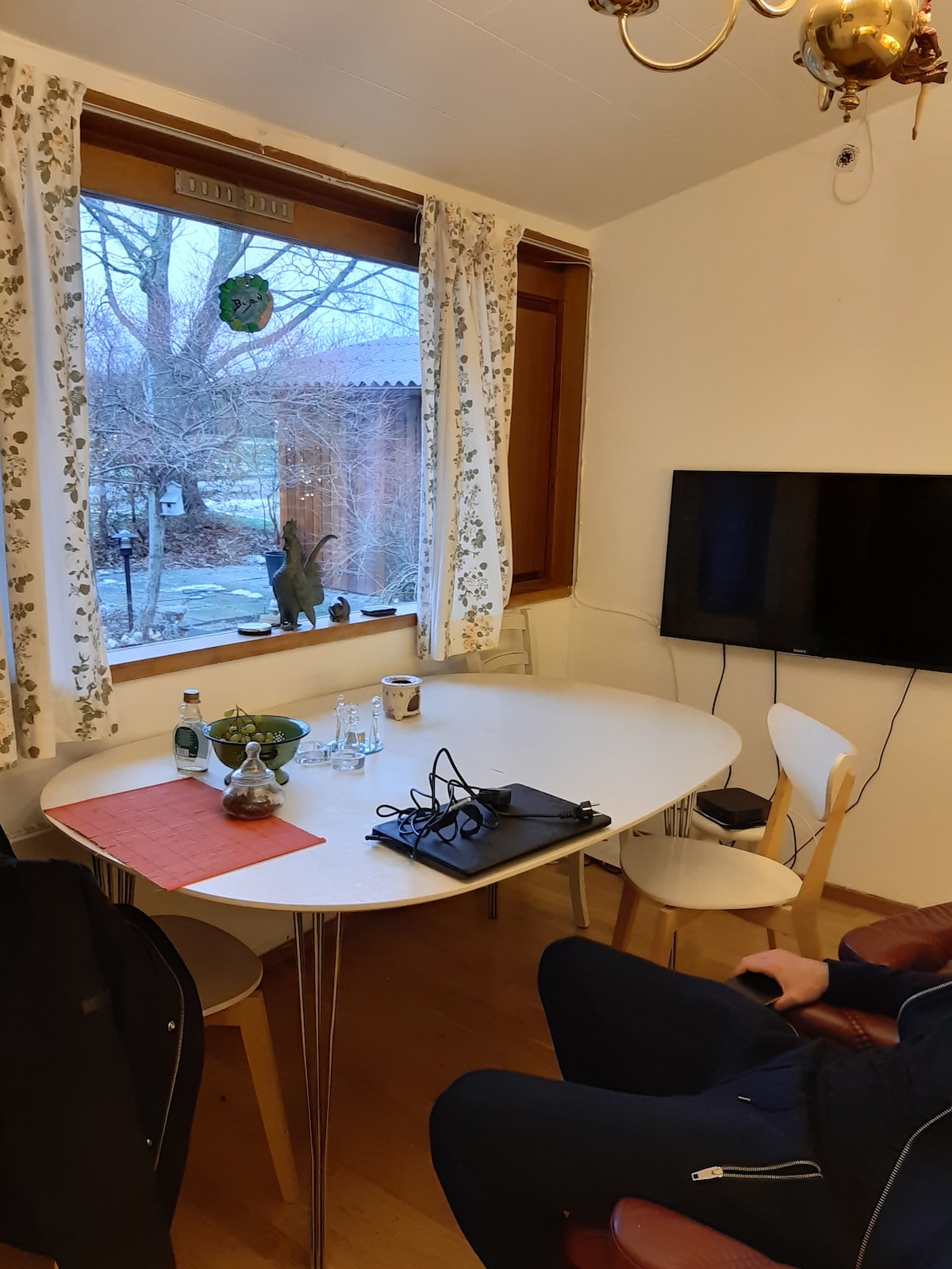 We are renting bedrooms out in our old tembered house. Doubble room with queensize beds and room with 2 single beds. Seperated restroom and shower, and livingroom. Rooms are rented separetly. Living room is shared between the rooms. There is a fully equipped kitchen awailable.