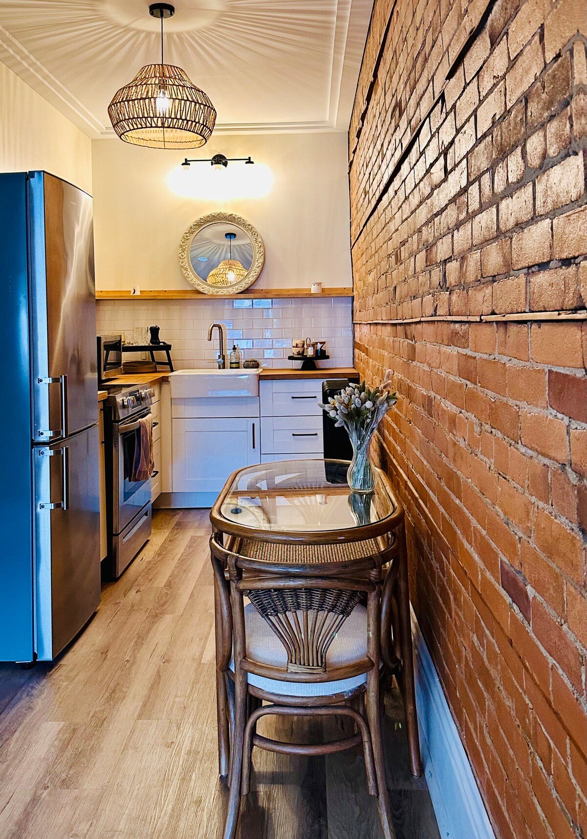 Genieße die Eleganz einer vergangenen Ära, während du in diesem atemberaubenden viktorianischen Loft übernachtest, das sich an einem ruhigen grünen Boulevard im Herzen von Kingstons historischstem und architektonisch vielseitigem Viertel befindet! Schön eingerichtet und mit einem hellen, gewölbten großen Wohnzimmer mit einem zinnverkleideten Zwischengeschoss, das auf einem originalen freiliegenden Balken getragen wird, freiliegenden Ziegeln, historischen Möbeln und einem atemberaubend einzigartigen schwarz-weißen gefliesten Badezimmer.