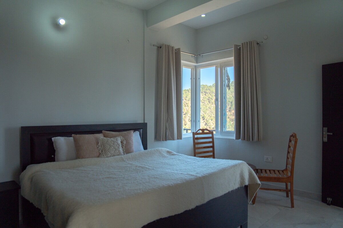 50% off for April- Hidden amidst whispering pines and untouched forest trails, The KANAKSH is a thoughtfully curated luxury villa with 4 rooms and 3 living areas where nature, privacy, and comfort come together effortlessly Wake up to soft golden sunlight in every room, breathe in crisp mountain air, and let the calm of the forest slow your pace. Designed for guests who appreciate understated luxury and meaningful experiences, this home offers a rare balance of elegance and raw Himalayan beauty