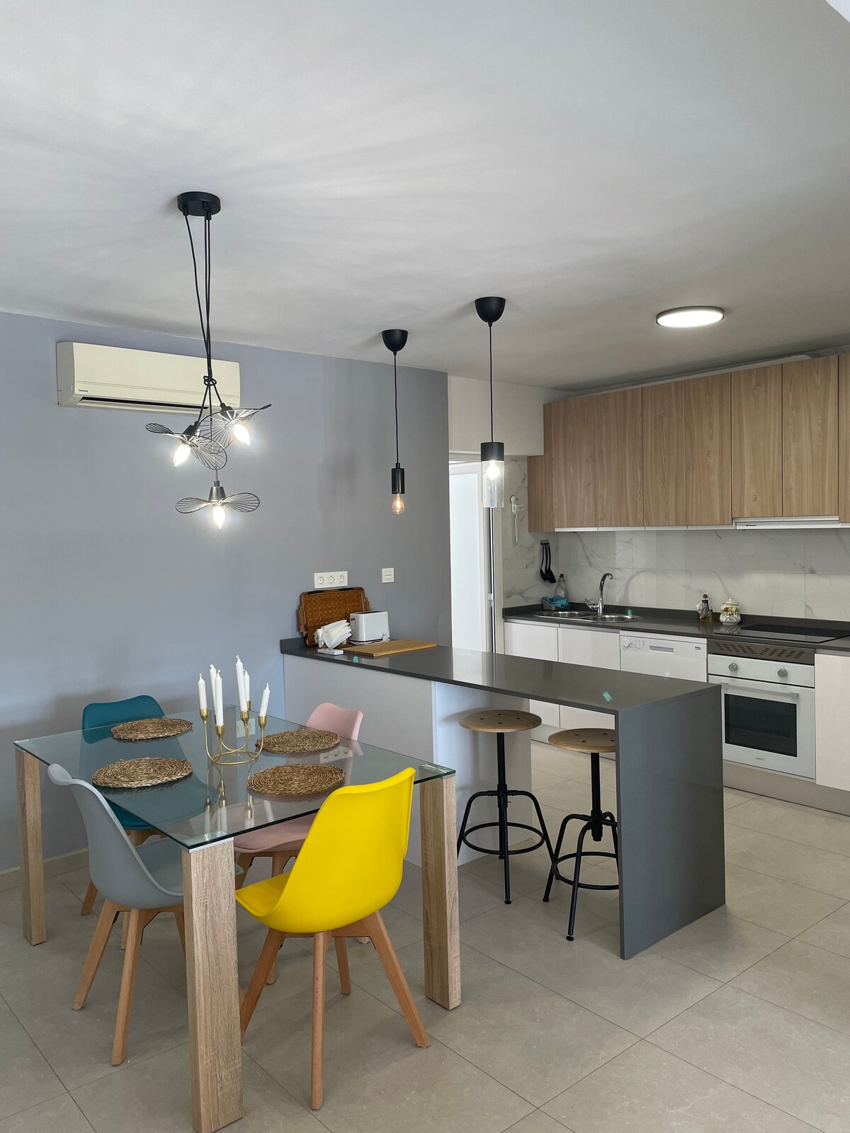 Genieße unsere gemütliche Wohnung, die nur wenige Schritte vom Strand entfernt ist. Dieser helle und moderne Raum lädt zum Entspannen ein, während du die Ruhe der Küste genießt. In einer ruhigen Gegend, aber mit allen Dienstleistungen, die Sie benötigen, wie Supermärkte, Eisdielen, Restaurants... schlendern Sie die Promenade entlang und genießen Sie die Strände. Ideal für Paare, Familien oder Reisende, die einen Rückzugsort am Meer suchen, wo die Ruhe im Mittelpunkt steht.
