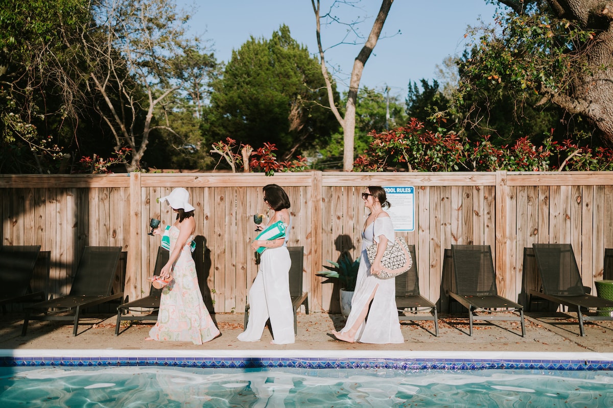 Nur 1,4 m von der Innenstadt von Ocean Springs entfernt, befindet sich das Pink Flamingo in einer ruhigen, gehobenen Gegend auf einem Golfplatz und in der Nähe von allem, was OS zu bieten hat. Ideal für Familien, Mädchenausflüge, Paare und mehr mit riesigem Garten mit oberirdischem Pool, 2 Hauptschlafzimmern mit eigenen Badezimmern, 2 voll ausgestatteten Wohnzimmern, überdachter Terrasse, Poolterrasse und mehr. Nur 5 Gehminuten vom Gulf Hills Resort entfernt, mit der neu renovierten Sunset Lounge und dem Capone's Restaurant, einem Clubhaus, in dem du Abschlagzeiten buchen kannst, und einem Blick auf den Sonnenuntergang am Bayou.