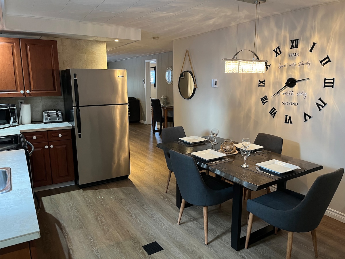 Lassen Sie sich von dieser schönen Wohnung in Grondines verzaubern, nur 1 Stunde von Québec-Stadt entfernt. Nur 15 Gehminuten vom St. Lawrence River und 15 Autominuten von allen Annehmlichkeiten entfernt. Kostenlose Parkplätze stehen vor Ort zur Verfügung, und EV-Ladestationen sind nur 1 Gehminute entfernt. Genießen Sie den Whirlpool, die Sauna, den Kamin und den üppigen Außenbereich … Eine wahre Oase der Ruhe, um sich in der Natur zu entspannen und zu erholen.