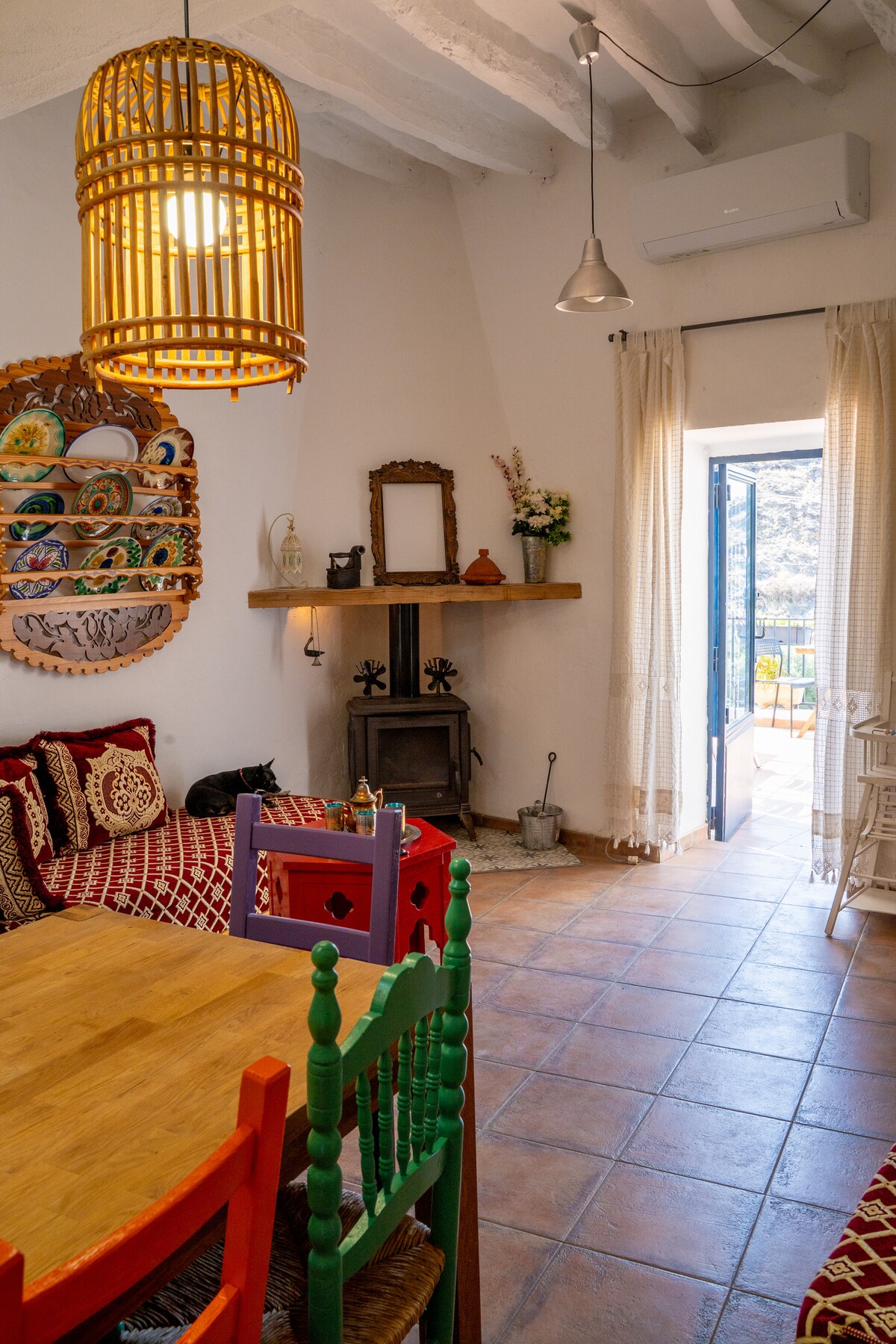 Villa Maria Eusebia ist ein ökologisches Landhaus mit guter Aussicht auf die Berge. Von der Terrasse aus kannst du Cabo de Gata im Hintergrund sehen. Es bietet Frieden, Ruhe und Komfort. Das Bauernhaus wurde 2016 mit bioklimatischer Architektur renoviert. Das Äußere ist zusammen mit dem Dach gegen Kälte und Hitze isoliert. Das Haus hält im Sommer und Winter eine sehr gute Temperatur. Es gibt auch einen Kamin und Deckenventilatoren