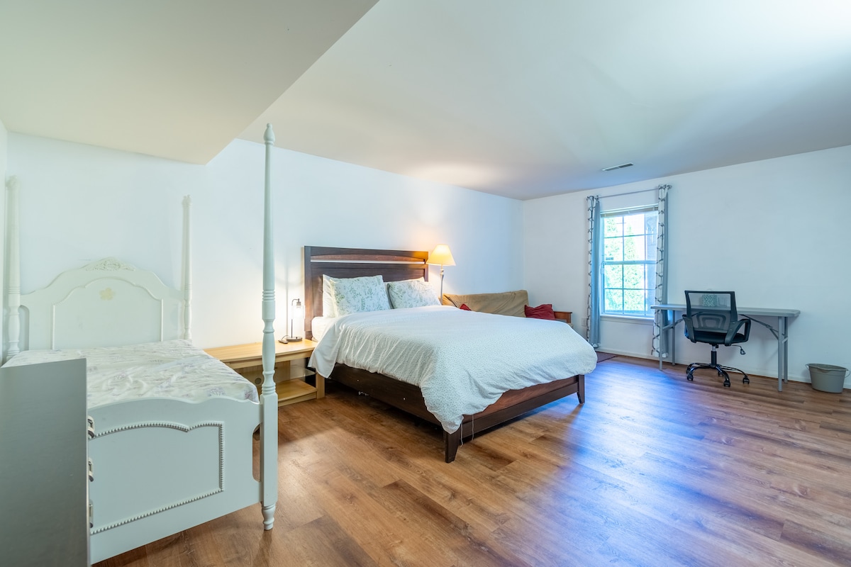 Stilvolle private Suite mit einem Schlafzimmer im Herzen von Germantown, MD! Spaziere zur Bibliothek, Restaurants, Supermärkten, Büros, Unterhaltung, Fitnessraum und malerischen Wanderwegen. Genieße einen geräumigen Wohnbereich mit einem großen Schreibtisch, einem gemütlichen Sofa und einem 45-Zoll Smart-TV mit Highspeed-WLAN. Das Schlafzimmer verfügt über ein komfortables Doppelbett, zwei große Fenster mit grünem Blick, reichlich Schubladen und einen Kleiderschrank. Die Suite verfügt über ein komplettes Badezimmer und eine Waschmaschine/einen Trockner in der Unterkunft. Perfekt für Geschäftsreisende, Paare oder Alleinreisende!