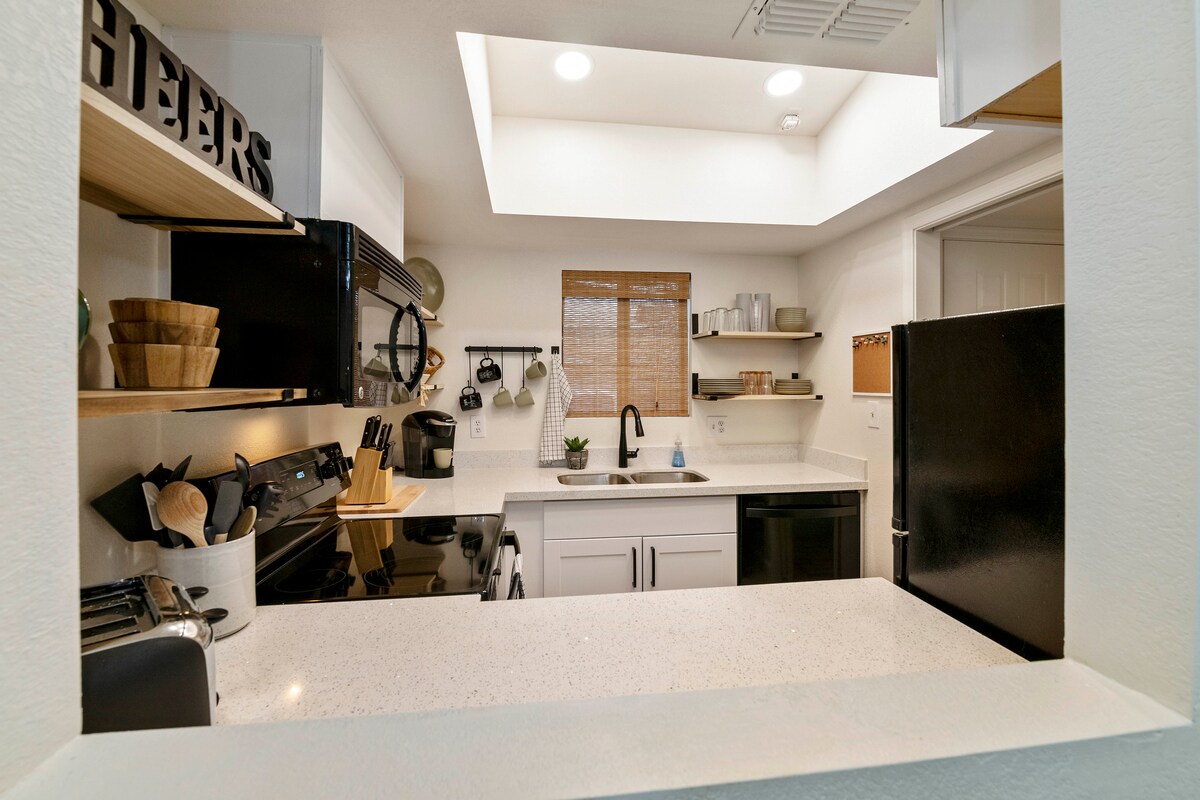 Die 3 besten Komplimente von Gästen: -> Makelloser und stilvoller Raum, der den Fotos entspricht -> Zu Fuß zum Tempe Town Lake, Restaurants & Parks -> Freundliche, schnelle Kommunikation von BluKey Stays ✨Erlebe das Beste von Tempe mit Komfort und Stil Egal, ob Sie für einen romantischen Kurzurlaub, eine Geschäftsreise oder ein Familienabenteuer zu Besuch sind, diese Wohnung bietet die perfekte Mischung aus Ruhe, Komfort und Annehmlichkeiten. Nur wenige Schritte vom Tempe Town Lake & ASU entfernt, bist du nah am Geschehen und genießt dennoch einen ruhigen, komfortablen Raum zum Entspannen.