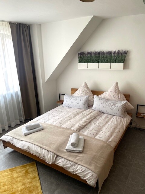 Wir bieten unsere schöne Einliegerwohnung im Dachgeschoss unseres renovierten Doppelhauses mit Garten an. Die Einliegerwohnung mit eigenem Badezimmer (Dusche / WC) und kleiner voll ausgestatter Küchenzeile verfügt über alles was man für einen kurzen Aufenthalt benötigt. Wir wohnen selbst im Erd-/Obergeschoss, sprechen Deutsch, Englisch, Russisch, Türkisch, und ein wenig französisch. Bei euerer Buchung erklärt bitte etwas genauer was ihr vor habt und wer genau anreisen wird. Danke!