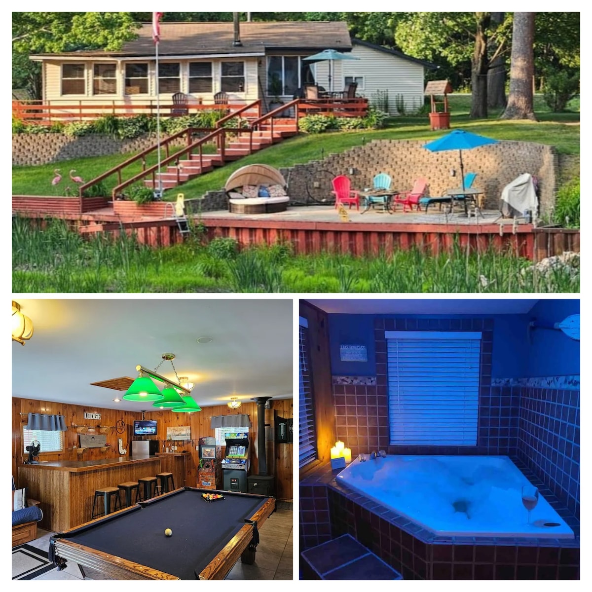 Hütte und Gästehaus mit Seeblick und uneingeschränktem Zugang zu allen Sportarten am Elk Lake mit großem Platz zum Festmachen von Pontons, Jetskis oder Booten. Kostenloser Zugang zum Kajak. Feuerstelle mit schönem Blick auf den Elk Lake. Viel Schlafplatz, sodass diese Hütte perfekt für große Familien sowie Jagd-/Anglergruppen oder Mädchen-/Jungen-Wochenenden ist! Spielzimmer mit Billardtisch, Shuffleboard, Darts und Bubble-Hockey im Gästehaus. Nur wenige Gehminuten von der Elk Lake Bar entfernt (sehr gutes Essen und Atmosphäre)!