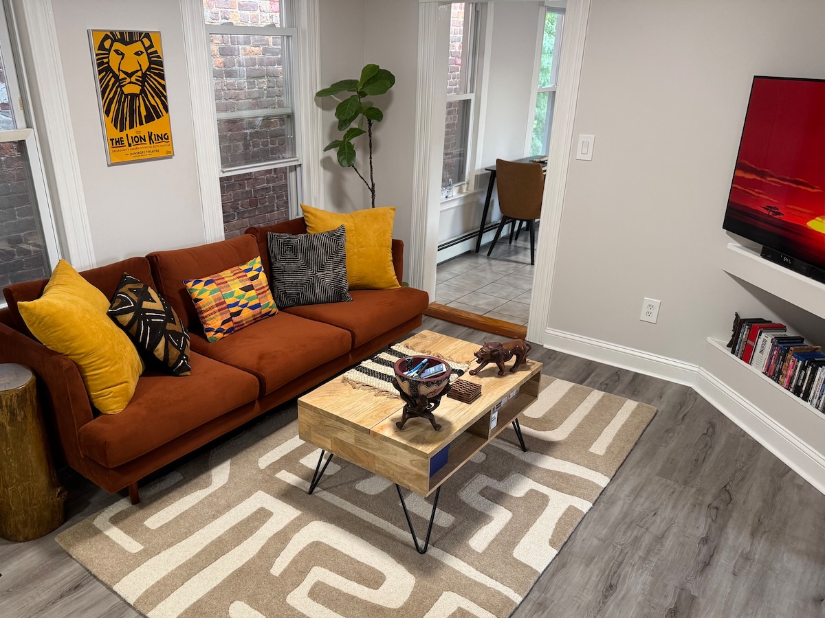 Glückliches Halloween 🎃 Neu renovierte, sonnige und gemütliche Wohnung im Herzen von Montclair. Deine Gastgeberin Sandra wohnt oben. Perfekt für Alleinreisende oder Paare, verfügt diese haustierfreundliche Unterkunft über zwei Schlafzimmer, ein Badezimmer, eine voll ausgestattete Küche, ein geräumiges Wohnzimmer, eine brandneue Waschmaschine und einen Trockner, eine schöne Holzterrasse und einen umzäunten/eingezäunten Hinterhof mit kostenlosen Parkplätzen. Günstig gelegen in der Nähe des Bahnhofs Walnut Street nach NYC und in der Nähe der Innenstadt von Montclair für Restaurants und Geschäfte.